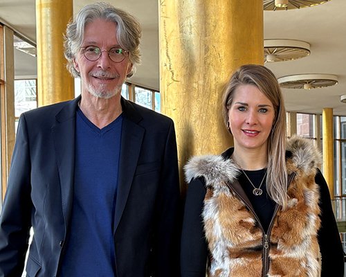 Moderator Klaus Reichert begrüßt Talk-Gast Vera Rödel.