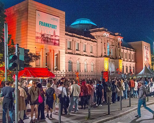 Lange Schlangen ber der Nacht der Museen 2025 vor dem Städel Museum.